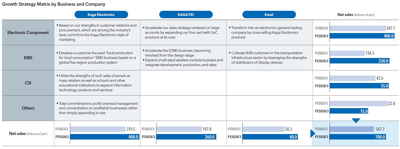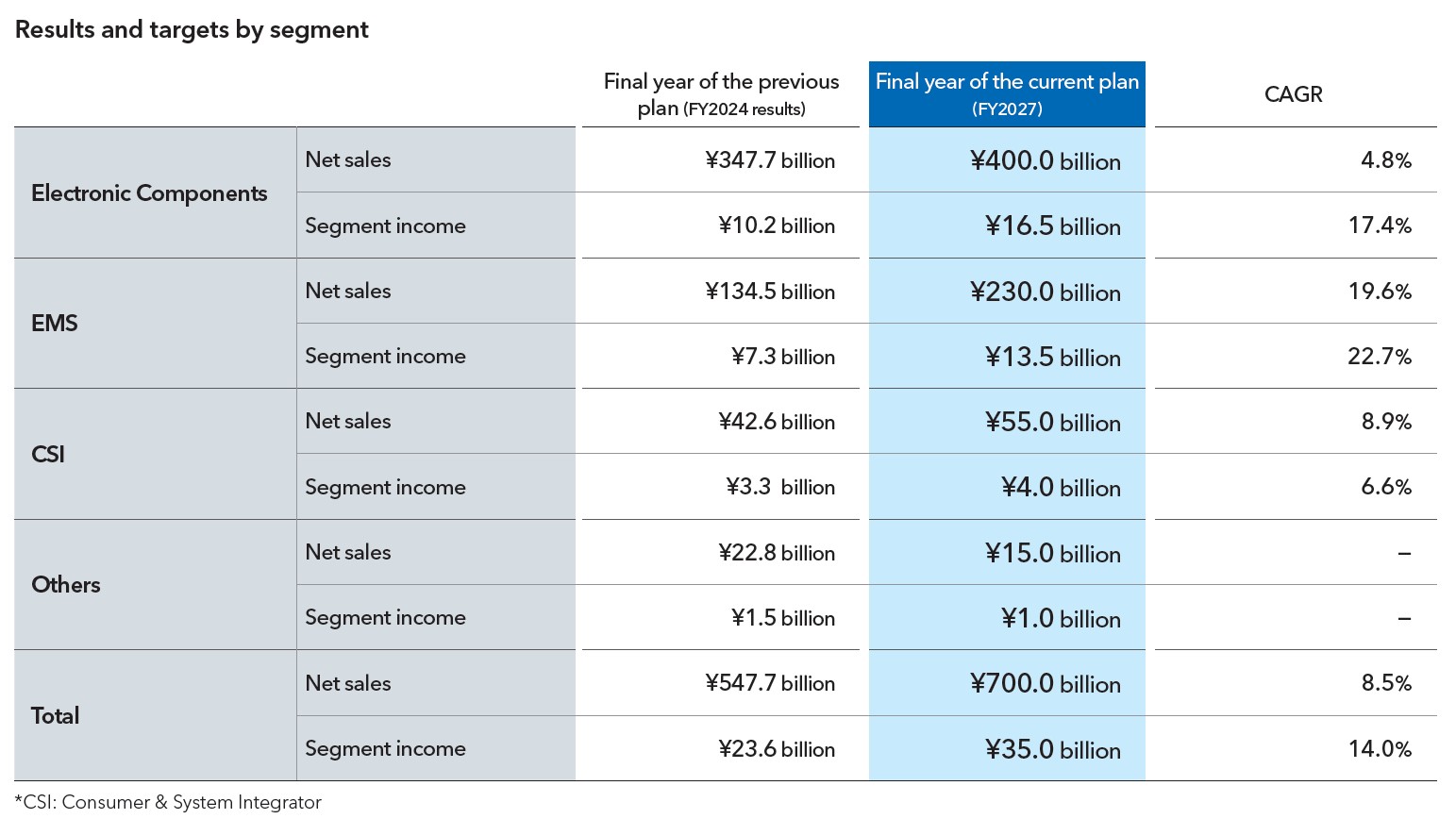 In our EMS business, which we position as a growth driver for the Company, we aim to outpace our competitors in terms of growth, as demonstrated by the compound annual growth rate (CAGR) target set in the medium-term management plan. Customers who previously handled all manufacturing in-house are increasingly turning to outsourcing for some or all of their operations. We expect to achieve high growth in the EMS business by effectively capitalizing on this trend.