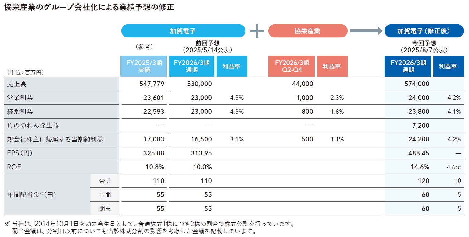 この戦略の一環として、2025年7月、当社は電子部品や半導体、産業機器等を取り扱う専門商社、協栄産業の普通株式に対してTOBを実施しました。同社は売上高577億円、最終利益17億円(2025年3月期)の業界では中堅クラスの商社であり、年内には100%子会社化する予定です。同社がグループインしたことにより、2026年3月期通期業績については当初の減収・減益予想から増収・増益予想に上方修正し、併せて配当予想も増配修正を公表しました。