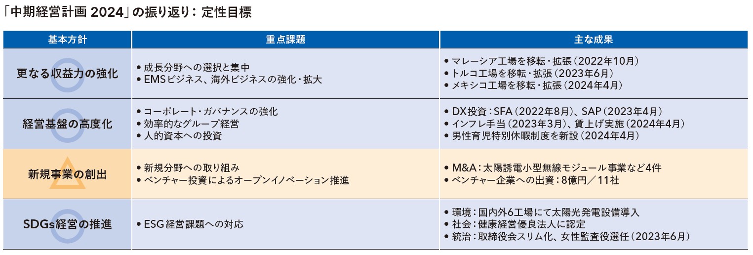 なお、「新規事業の創出」に関しましては、小規模な事業譲渡やベンチャー企業への投資を実行しましたが、定量目標にも掲げた大型M&Aは、計画期間中には実現に至りませんでした。これについては、新「中期経営計画 2027」において取り組みを加速させる決意を固めたところです。