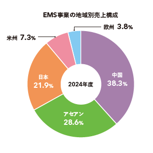加賀電子グループにおけるEMS事業は、お客様にとって近くて便利な「コンビニ型EMS」の多品種少量生産から、近場でほとんどそろい、まとめ買いもできる「地元スーパーマーケット型EMS」の中規模生産を得意としており、大量生産に注力する「郊外ショッピングセンター型EMS」のアジア系企業とは異なるポジションを築き上げています。